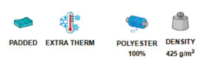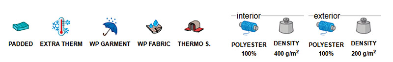 - Κατασκευασμένο από αδιάβροχο ύφασμα εξωτερικής επίπεδης πλέξης , λεία εσωτερική επένδυση και εσωτερικό πάπλωμα για εξασφάλιση εξαιρετικής θερμομόνωσης.