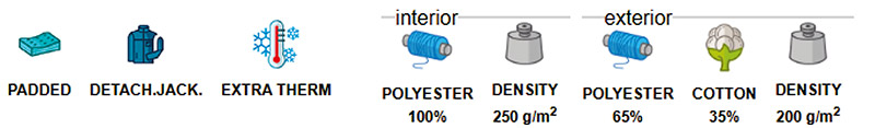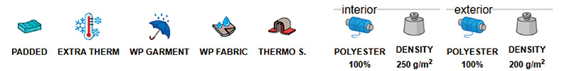 - Κατασκευασμένο από εξωτερικό αδιάβροχο ύφασμα Canvas , λεία εσωτερική επένδυση και εσωτερική επένδυση για βέλτιστη θερμομόνωση και επιπλέον άνεση, θερμοκολλημένες ραφές που αποτρέπουν τη διαρροή νερού, περιλαμβάνει δύο αντανακλαστικές ταινίες ραμμένες στα μανίκια, τον κορμό και την πλάτη για μεγαλύτερη ασφάλεια.