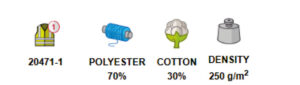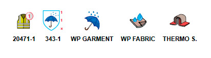 - Ένδυμα πιστοποιημένο ως Υψηλής ορατότητας κατηγορίας Category II PPE Class 1 και Προστασία από τη βροχή, Class 1-1-x: based on 13688, 20471 and 343, μέγιστη διάρκεια ζωής 50 πλυσίματος.