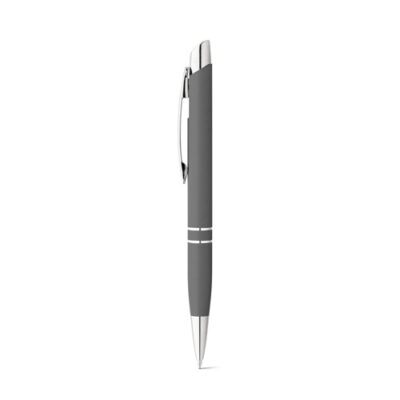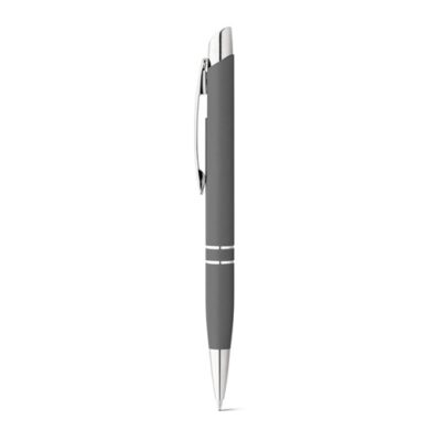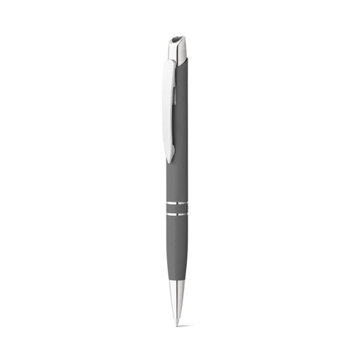 Aluminium ball pen with rubber finish and clip. Blue ink. ø11 x 139 mm