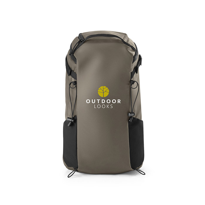 Hiking-style backpack for everyday use in urban environments, adventures or outdoor sports. The functional design combined with the quality and resistance of the materials make this backpack a unique product. Made from 600D rPET with a waterproof coating. The backpack consists of 1 main compartment with a multifunction pocket in 210D rPET, 1 separate fully padded compartment for a laptop up to 14 and mesh side pockets. The top pocket has a zip fastener. This backpack has special features such as multifunctional belt loops, weight control straps, chest strap. Capacity up to 18 litres. 280 x 455 x 160 mm”