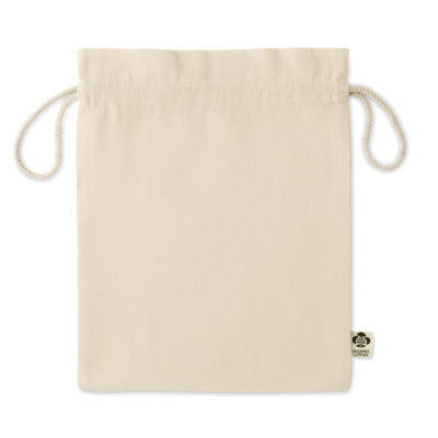 Medium gift draw cord bag in organic cotton. Size approx. 25 x 32 cm. 105 gr/m².