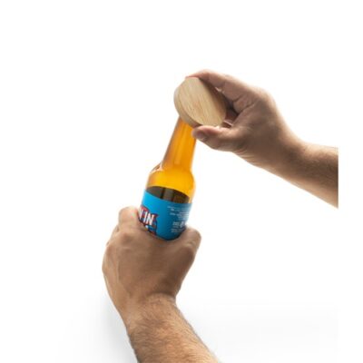 Bamboo coaster with bottle opener and magnet. As the product is made from natural materials, the colour and the printing result may vary between products. Ø65 x 11 mm
