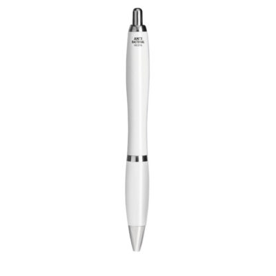 Push button ball pen in ABS with antibacterial barrel. Contains a special additive ( nano silver) that prevent bacteria from colonizing the surface of the pen. ISO 22196. Blue ink.