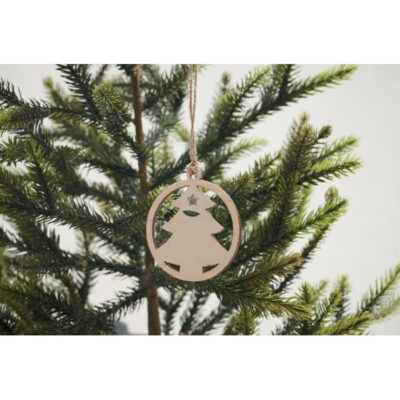 Wooden tree shaped decoration hanger with jute cord including spruce seeds. Presented in kraft envelope. Made in EU.