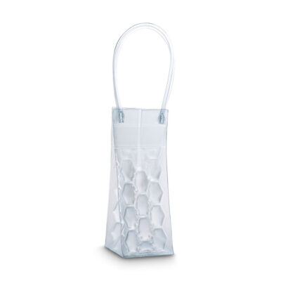 Cooler bag in transparent PVC for one bottle. Put the cooler in the freezer before using and it will keep your bottle cool for longer.
