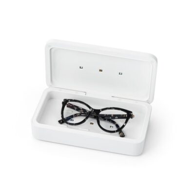 ABS and PC sterilizer case with combination of UVC and UVA radiation that allows the elimination of a wide spectrum of bacteria. The case has 2 UV leds inside with a total power of 2W, and has been specially designed for the elimination of bacteria in everyday objects, such as: keys, telephones, smartphones, masks, glasses, remote controls, jewellery and other small objects. Efficiency of 70% with only 1 cycle of 5 minutes and 999% with two cycles of 5 minutes. It has a safety sensor that turns off the lamps immediately as soon as the case is opened. The top of the box includes a wireless fast charger (10W), with 5V/3A input and USB type C charging port. Includes 1 metre cable. Supplied in a gift box. 210 x 120 x 55 mm | Interior: 190 x 95 x 20 mm | Box: 240 x 130 x 71 mm