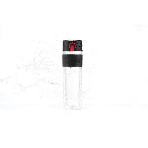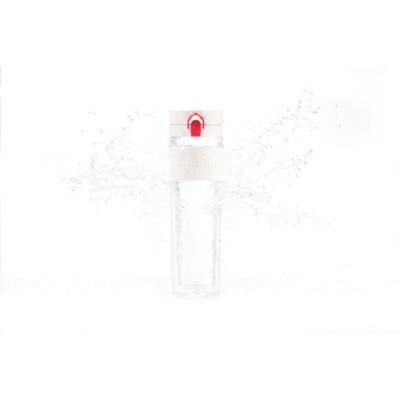 Transparent double-walled bottle made of high-quality Tritan™. The double-wall insulation is break-resistant and will not stain or taste. The silicone band makes it comfortable and safe to carry and the screw-on cap with easy opening at the top provides good water flow to prevent accidents. The Bistro water bottle is easy to carry and the innovative closure guards against spills in your backpack. It is the ideal companion for your everyday life. Suitable for dishwashers. It has a capacity of up to 450 mL. 89 x 253 x 71 mm