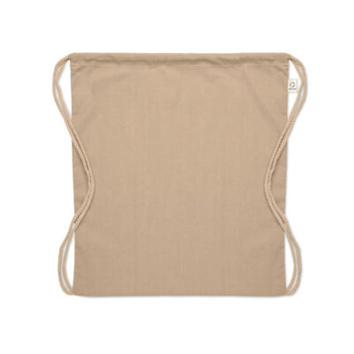 Drawstring bag in recycled pre-consumer cotton (70 %) and RPET (30%) 140 gr/m².
