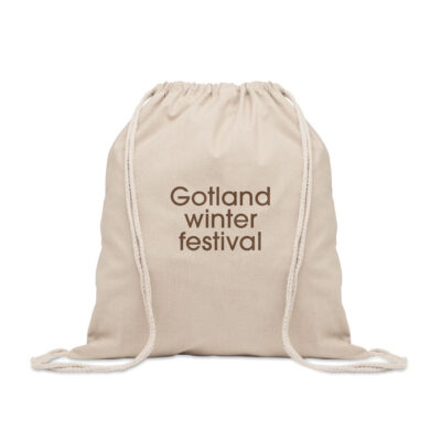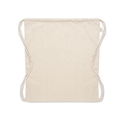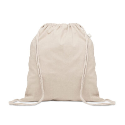 Drawstring bag in recycled pre-consumer cotton (70 %) and RPET (30%) 140 gr/m².