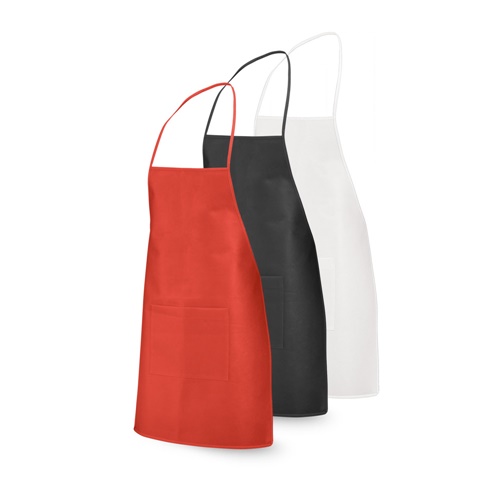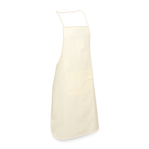 100% cotton apron with soft fabric, natural colour with coloured trim. Apron with 1 front pocket and adjustable straps. 600 x 900 mm | Pocket: 250 x 200 mm