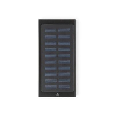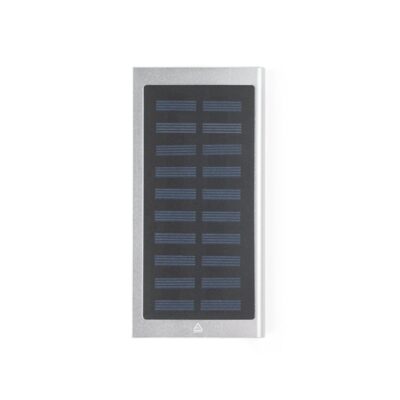 CLERK. 8.000 mAh power bank with solar panel in 100% recycled aluminium