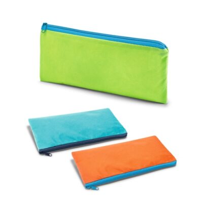 Non-woven zippered pencil case. Features a rectangular design. Ideal for carrying colouring pencils. 210 x 110 mm