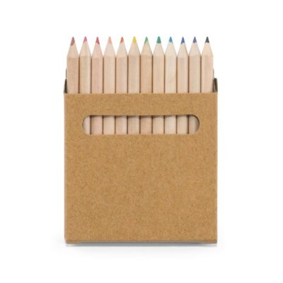 Kraft paper box with 12 colouring pencils. 90 x 90 x 9 mm