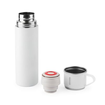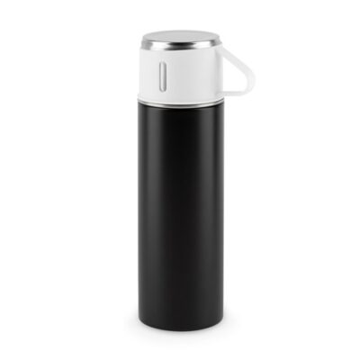 Double-walled stainless steel bottle (90% recycled) with a matte finish. The lid, also in stainless steel and with a matte frost finish, can be transformed into a glass with a capacity of up to 140 mL. Bottle capacity up to 490 mL. ø67 x 230 mm