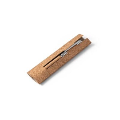Ballpoint pen with cork and metal body with clip. The ballpoint pen has blue ink and a twist mechanism. Supplied in a cork gift pounch. ø11 x 137 mm | Pouch: 155 x 40 mm