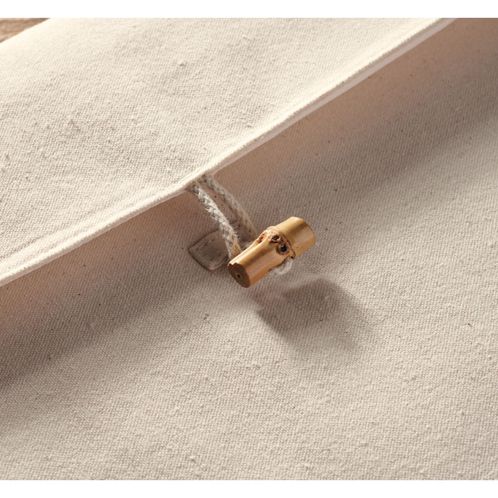 15 inch padded laptop pouch in 220 gr/m² cotton. Inner lining 120 gr/m². Bamboo button closure.