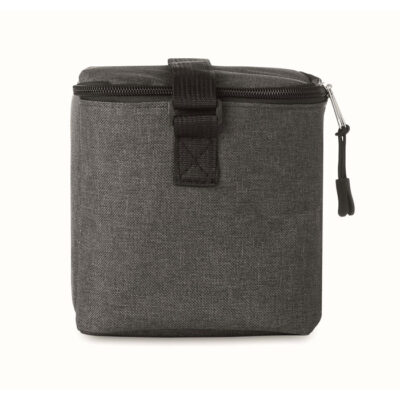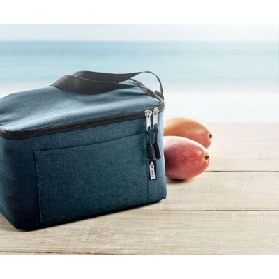 Cooler bag for 6 cans in 2 tone 600D RPET and front pocket. Capacity 3L. Isolation material: 0.15mm PEVA + 3mm foam.