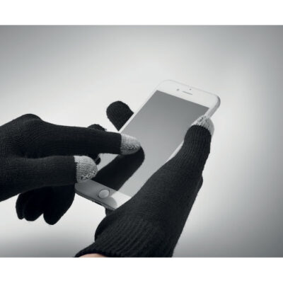 3 piece winter set. Including RPET beanie, scarf and tactile gloves with label for printing area.