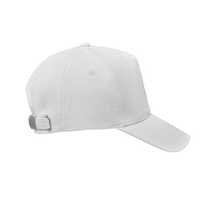 5 panel baseball cap made from 250 gr/m² organic brushed cotton with metal adjustable strap back buckle closure. It has 4 metal eyelets with matching color plating. This stylish hat will keep the sun out of your face as wel as compliment your daily outfit. Because its made from organic cotton, it is a sustainable choice.