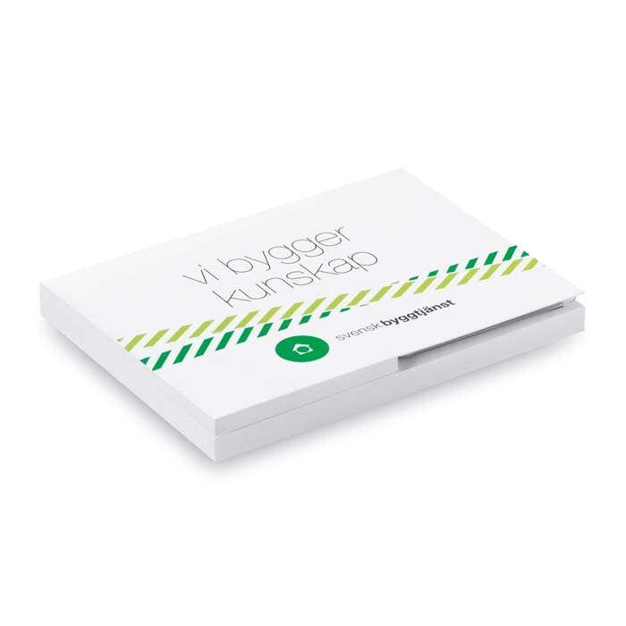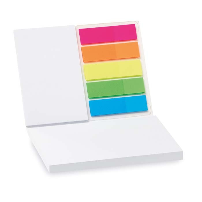 Διαφημιστικά μπλοκ σημειώσεων με μαλακό πλαστικοποιημένο εξώφυλλο και 75 αυτοκόλλητα σημειώματα σε 2 μεγέθη και 20 markers σε 5 χρώματα. Ένα διαχρονικό και αποτελεσματικό εργαλείο marketing για κάθε επιχείρηση. Ειδικευόμαστε στην εκτύπωση λογοτύπου σε sticky notes, προσφέροντάς σας ένα πρακτικό προϊόν που θα βρίσκεται καθημερινά στο γραφείο των πελατών σας.