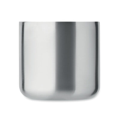 Double wall mug in recycled stainless steel (90% recycled stainless steel and 10% stainless steel) mug with wooden handle. Capacity: 350 ml.