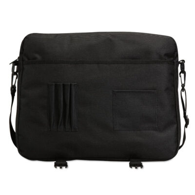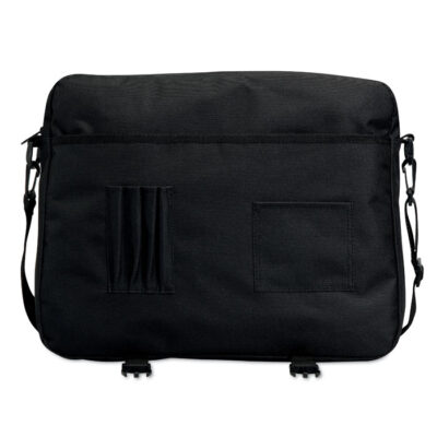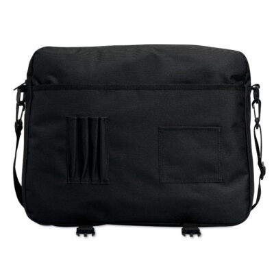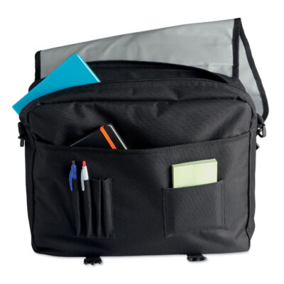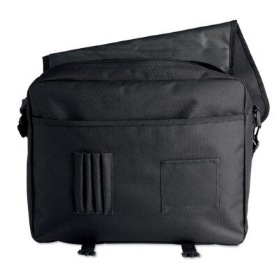 Document flap bag in 600D polyester with zipped main compartment and several pockets with an adjustable and detachable shoulder strap.