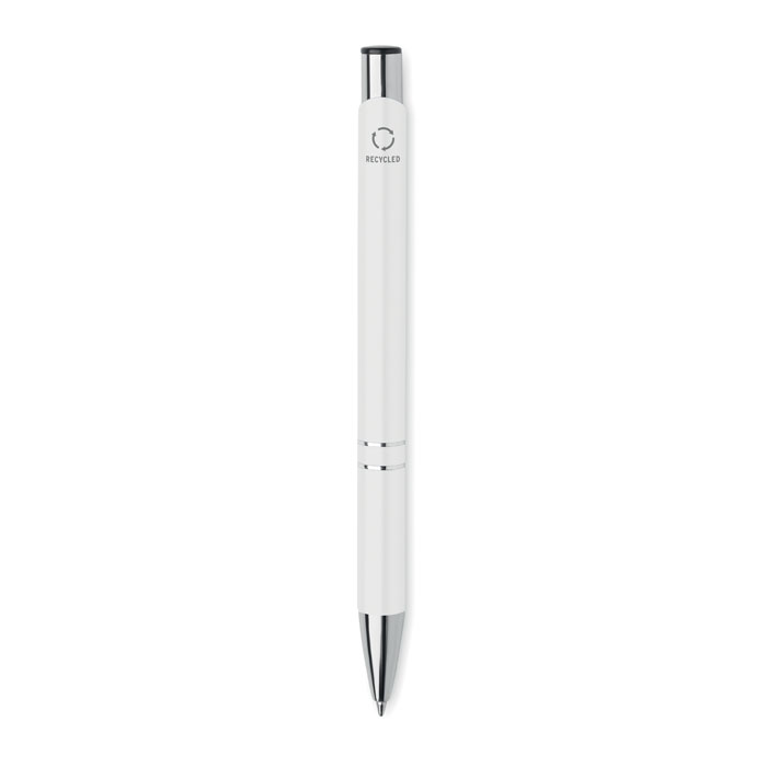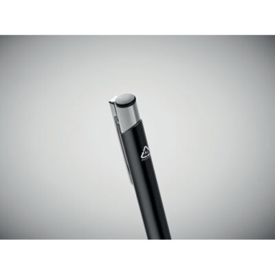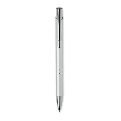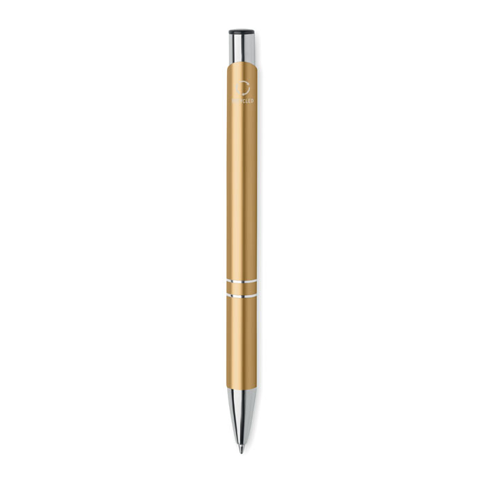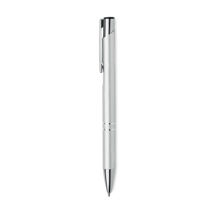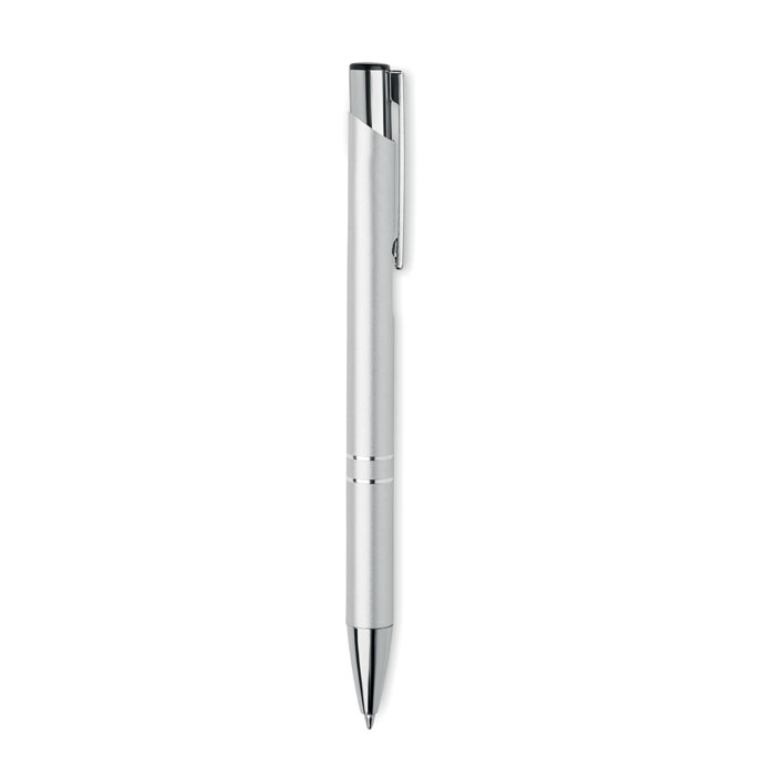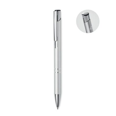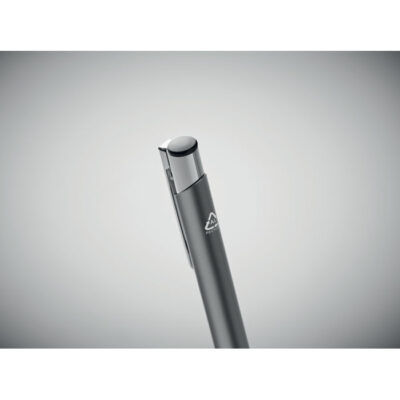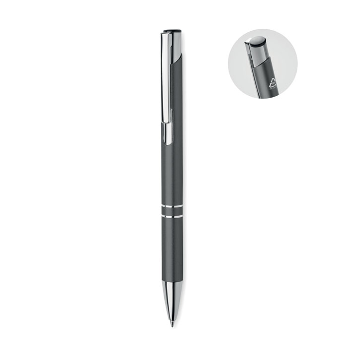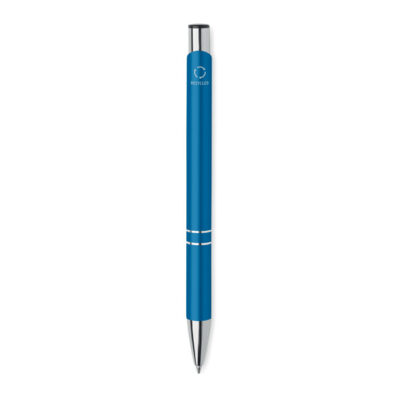 Push button ball pen in recycled aluminum. Blue ink.