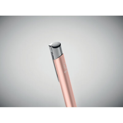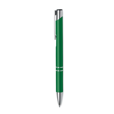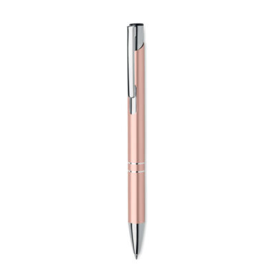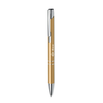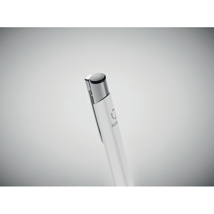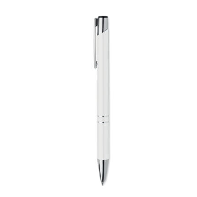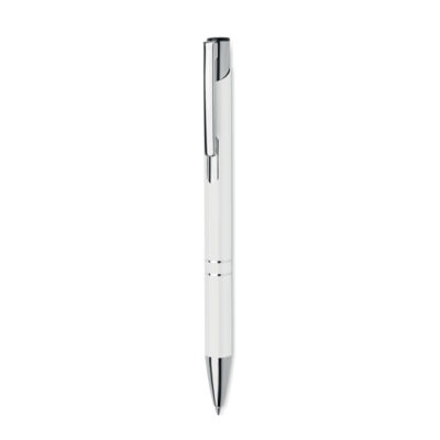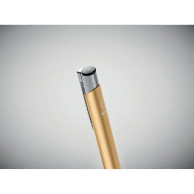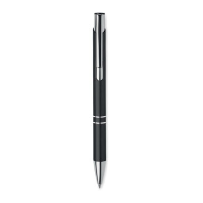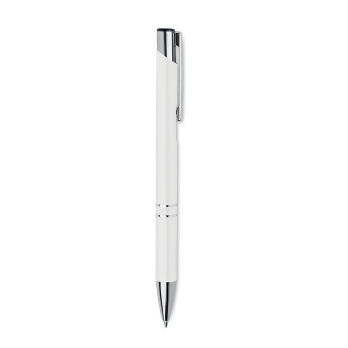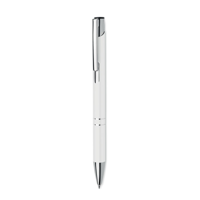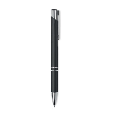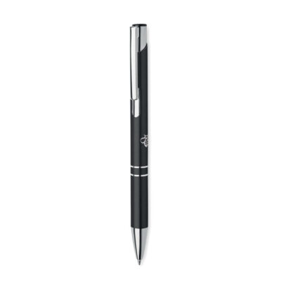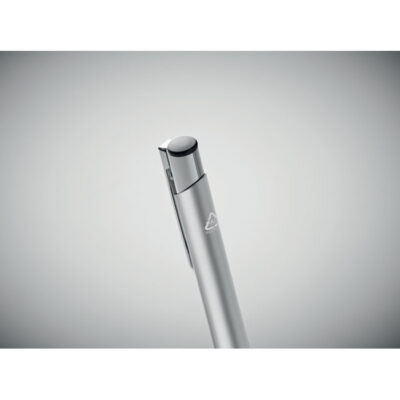 Push button ball pen in recycled aluminum. Blue ink.