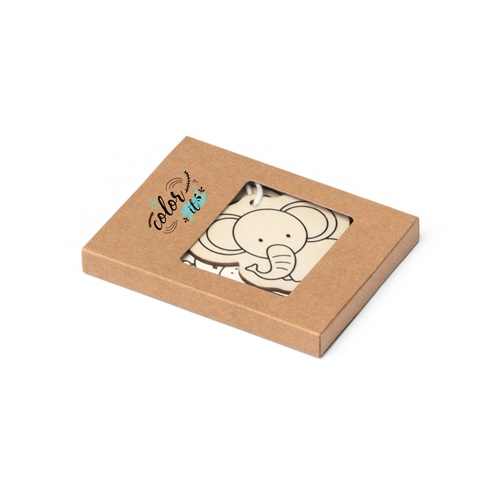 Drawing set supplied in wooden box. Includes a 20 cm ruler, 6 colouring pencils, 1 graphite pencil, a sharpener and an eraser. 220 x 43 x 32 mm