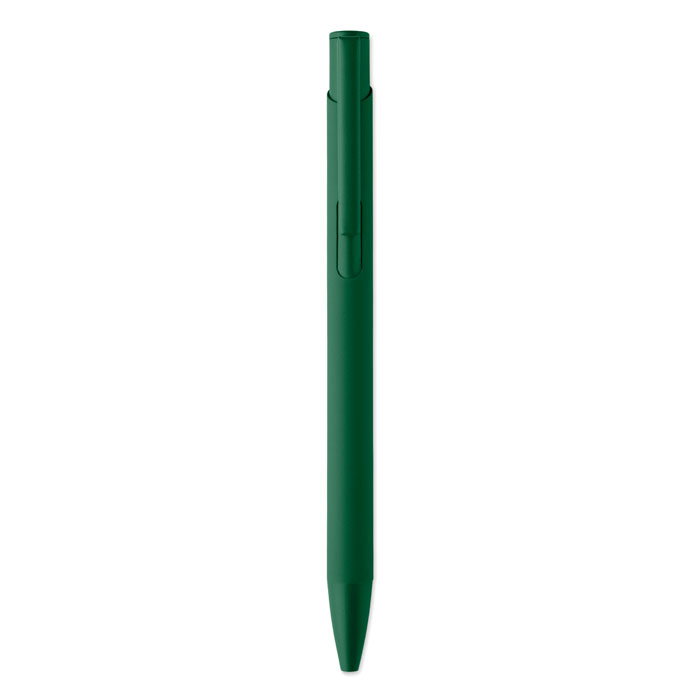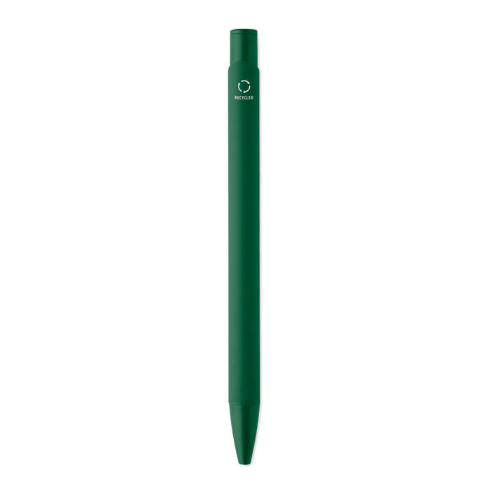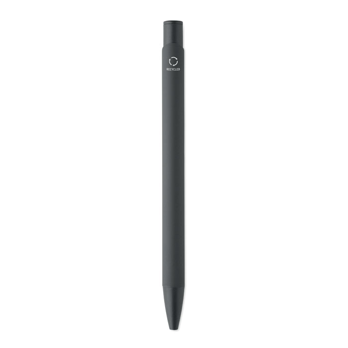 Push-type pen made of recycled aluminium with iron clip and colour rubberised barrel. Blue ink.