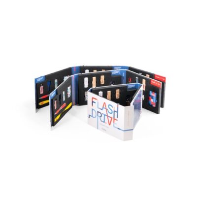 FLASH DRIVE SHOWCASE is composed of 19 flash drives, of various shapes, sizes and materials, customized with different colors and printing techniques. It brings together examples of our Flash’n’Go offer – flash drives in stock and delivered in record time, and ConnectingYou USB examples – fully customizable flash drives, imported directly from Asia and with capacity up to 32GB. The folder is made of plasticized cardboard and has a magnetic closure, through incorporated magnets. It includes the following products and techniques:77664 | 77432 | 77506 | 77508 | 77704 | 77562 |77595 – Screen Printing, Laser77700 – PVC 2D, 77515 – Screen Printing (body), Pad Printing (clip), 77689 | 97434 – Laser, 77696 – Screen Printing,77559 – Screen Printing, laser, doming,77523 – Screen Printing, Hot Stamping,97548 | 97549 | 97433 – Laser, Pad Printing, Screen Printing, 97435 – Pad Printing, laser, 97436 – Screen Printing, laser, Pad Printing, Digital UV, 97437 – Digital UV,97438 – Hot Stamping, 249 x 176 x 50 mm
