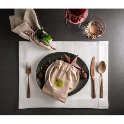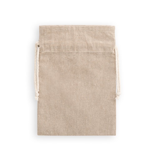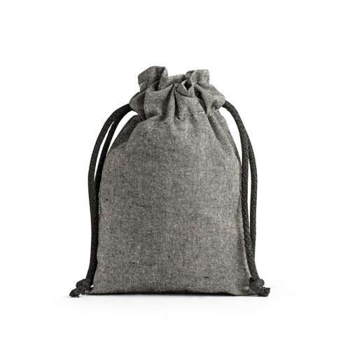Recycled cotton gift bag (140 g/m²) and cotton cord handles. Reusable bag ideal for small gifts. 140 x 200 mm