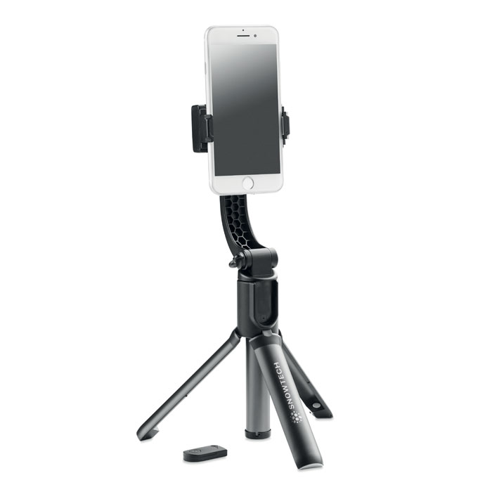 Telescopic smartphone holder and stabiliser with tripod functionality. 1-axis gimbal. 450 mAh LiB battery.
