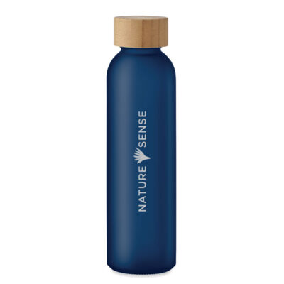 Glass bottle with frosted finish and bamboo lid. Leak-free. Capacity: 500 ml. Bamboo is a natural product, there may be slight variations in colour and size per item, which can affect the final decoration outcome.