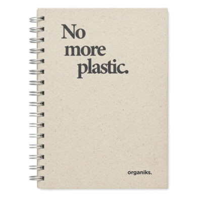 A5 grass paper notebook. Grass paper hard cover. Twin-wire. 160 lined grass paper pages (80 sheets). 95 gsm paper. Grass paper containing 40% grass fibers.