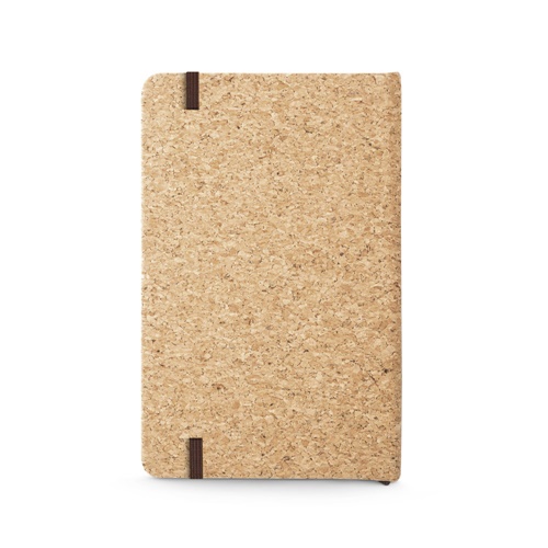Pocket cork notebook with 160 plain pages in FSC™ certified material and other controlled materials, separator strip and elastic fastener. 90 x 142 mm
