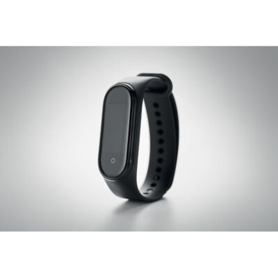 4.0 wireless smart health watch in ABS with silicone strap. 0.96 inch touch LCD display. Rechargeable Li-Pol 90 mAh battery. Requires a free app (HryFine available in both iOS and Android).