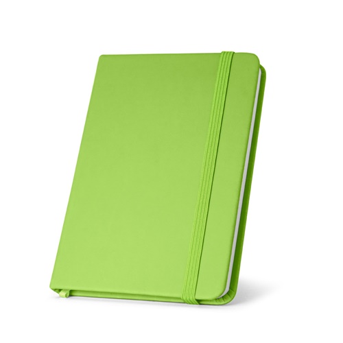 A5 notepad with 160 plain pages, PU hardcover, bookmark ribbon and elastic band. 140 x 210 mm