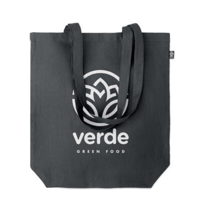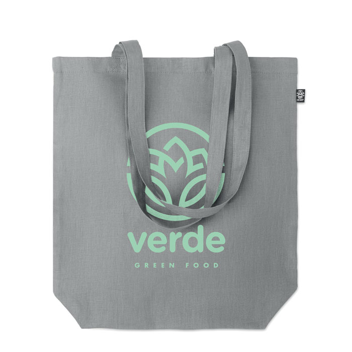 100% hemp fabric shopping bag with long handles with gusset in the bottom. 200 gr/m².