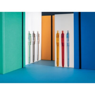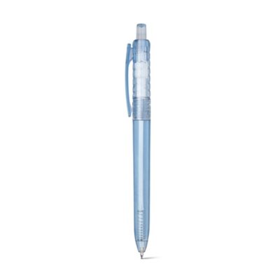 Push action ball pen in translucent PET (100% rPET) material. Blue ink. ø11 x 139 mm