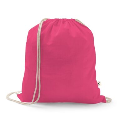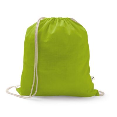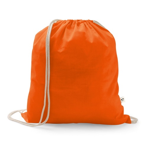 Backpack made from recycled cotton (70%) and polyester (30% rPET) (150 g/m²), with cotton drawstrings for closure. Recycled cotton is solid-colored and undyed. The raw material is used in its original form and color, without the use of dyeing or bleaching chemicals, contributing to a lower impact. The solid color is obtained by choosing recycled yarn with the same shade, and impurities and color variations may appear. 370 x 410 mm