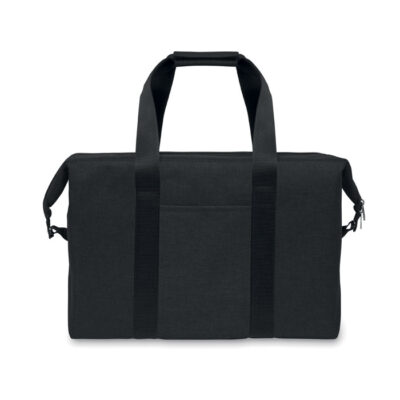 “Cooler bag in RPET 300D cationic polyester. Isolation material: 3mm foam laminated with aluminium foil. Capacity 3L.”
