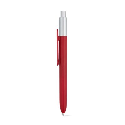 ABS push button ball pen with gloss coloured barrel and clip with chrome trim and push button. Includes x20 blue ink refills. ø11 x 139 mm