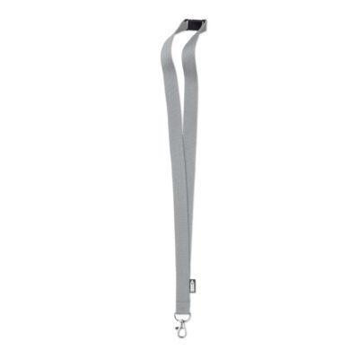 Lanyard in RPET with metal hook and safety breakaway. 20mm wide. Sublimation print available on white item only.