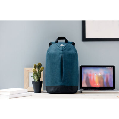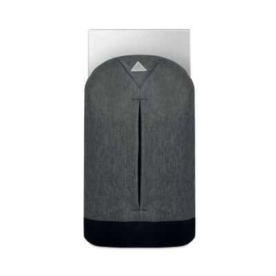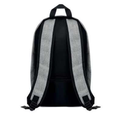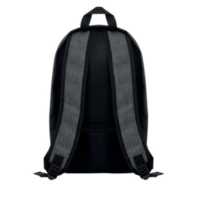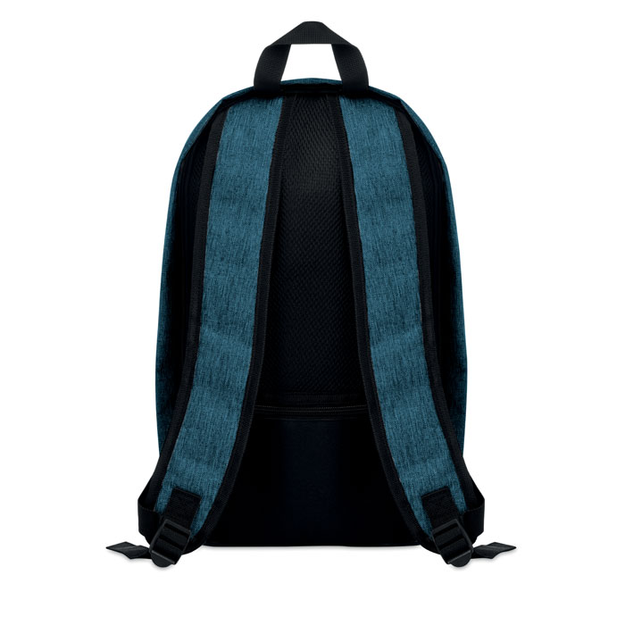 13 inch laptop backpack in 600D 2 tone polyester with outside pocket with zipper. Zipper main compartment on backside for better protection.