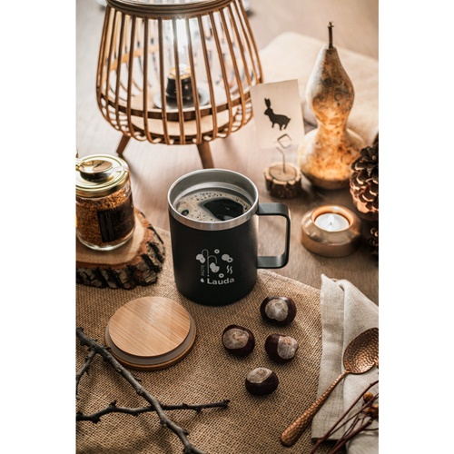 LAUDA. Mug in 90% recycled stainless steel with bamboo lid 420 mL