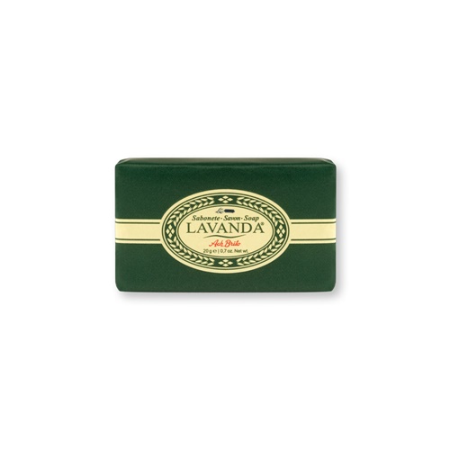 Soap made with a vegetable soap base and Lavender fragrance, with a soft texture that leaves the skin perfumed. Its small size is ideal for carrying in your gym bag or for travelling. Traditionally produced in Portugal. Capacity 20 g. Classic packaging that retains the original design, with its green background decorated with small graphics representing lavender flowers. 59 x 34 x 10 mm