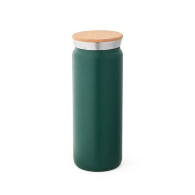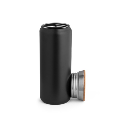 Stainless steel vacuum-insulated double-walled thermos flask with a copper-coated inner wall and cork lid. Bottle with capacity up to 600 mL and keeps drinks hot for 6h and cold for 24h. Supplied in a kraft paper gift box. As the product is made from natural materials, the colour and size of the product and the printing result may vary between products. ø73 x 197 mm