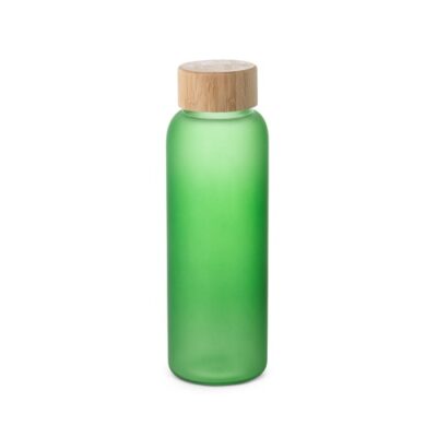 Frosted borosilicate glass bottle with bamboo screw-on lid and capacity up to 500 mL. Supplied in a kraft paper gift box. As the product is made from natural materials, the colour and the printing result may vary between products. ø65 x 200 mm